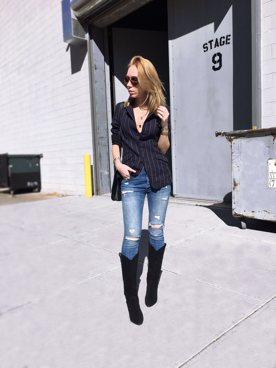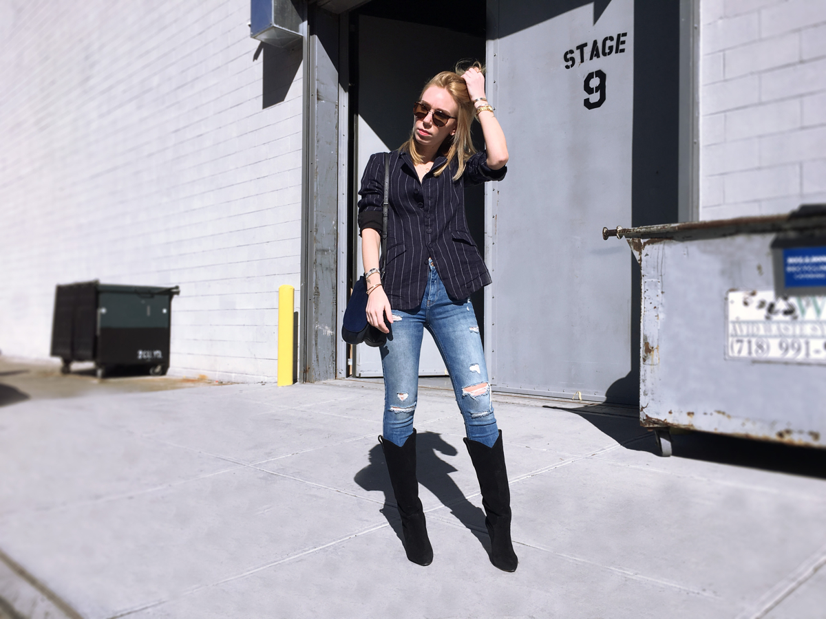 I wanted to mix it up a little other than just wearing it as a traditional blazer and having a tee or button down underneath. I love wearing jackets and blazers as a top within itself. Having a bralette under the blazer so you can expose it adds a sexy element to the look without be too pushy. This is especially great when you have an oversized blazer like the one I’m wearing. I paired it with my favorite knee high boots from Isabel Marant and felt that the look really came together.